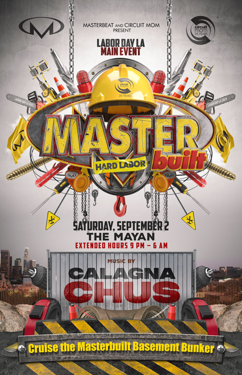 Grab your hard hat and gear and head on down to our construction site at The Mayan for the main event of Labor Day LA: Masterbuilt. Get ready for the over the top production that Masterbeat and Circuit Mom are famous for, as we transform The Mayan into a giant construction site with heavy machinery and steaming manholes.